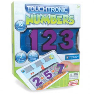 Introduce numbers, counting, matching and simple sums with Touchtronic Numbers. The world's first tactile 3D numbers to interact with the iPad. Includes numbers 0-9 and 6 equation symbols, color-coded with numbers in purple and equations in orange. The supporting FREE apps (available from the iTunes store) includes games and activities for teaching number recognition, counting and place value. Touchtronic Numbers comes in a handy storage bag. Ages 3+.
