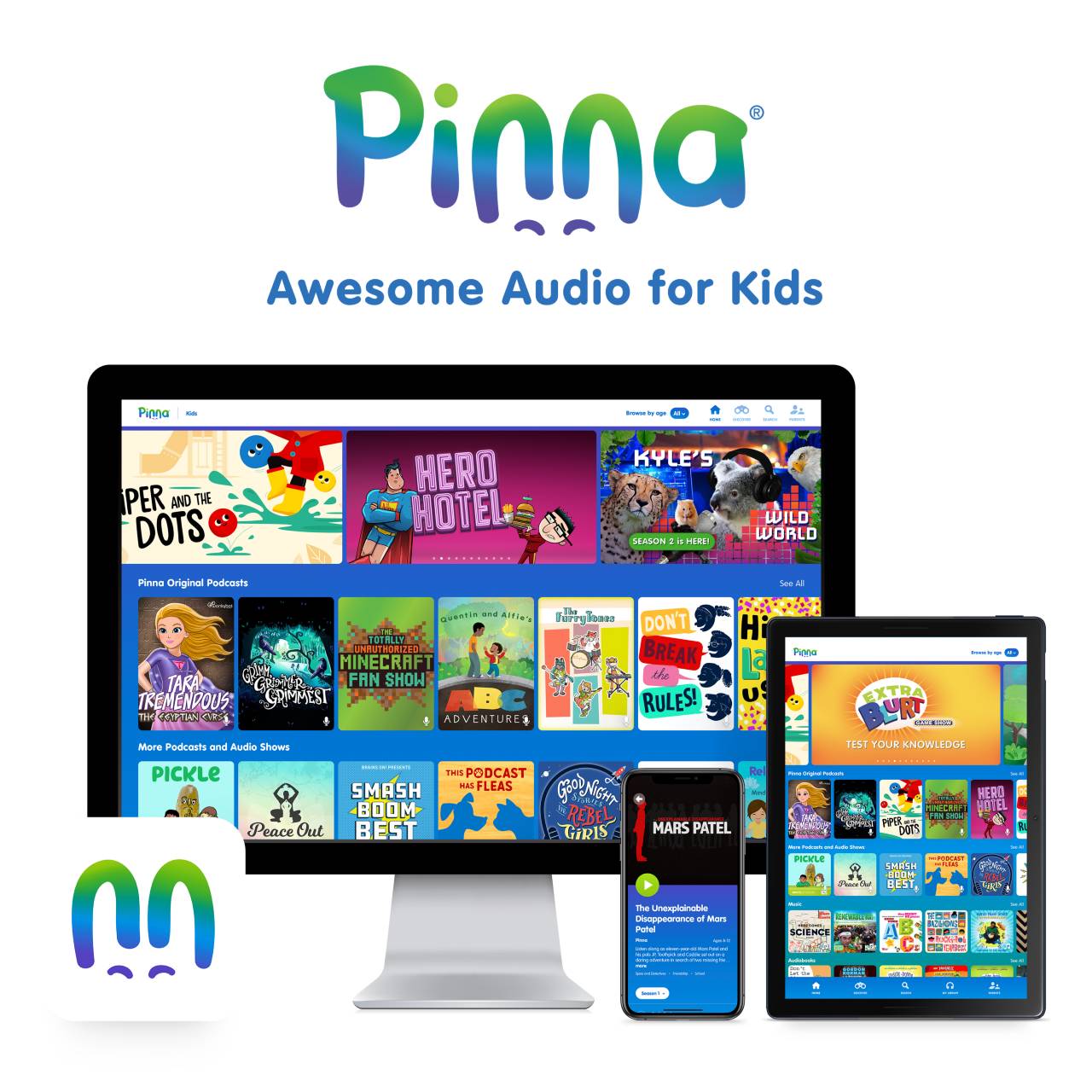 Pinna is an audio-first children's media company offering the first and only ad-free, audio on-demand streaming service that delivers breakthrough, original audio programming curated and created for kids 3-12 that includes podcasts, music and audiobooks. With the goal of activating kids' imaginations, Pinna creates and produces award-winning original content as well as partners with the best-in-class brands and top creative talent worldwide to deliver innovative audio programming to entertain and educate kids throughout the day.