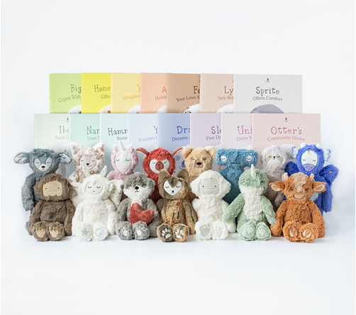Children learn how to deal with big feelings with the help of the All the Kins Educator Set by Slumberkins. Narwhal teaches the importance of teamwork, Unicorn shows it's awesome to be unique, and Lynx practices setting boundaries. This set is complete with fifteen books and their matching stuffies that bring comfort while encouraging self-reflection and a healthy expression of emotions.