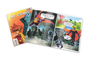 Comic enthusiasts create their own 16-page comic book that is professionally published. My Comic Book publishing kit includes a comprehensive guide book "Comics in Action," a convenient carrying box, pencil, markers, eraser and ink pen. After writers design their comic book, the project can be completed by either drawing then mailing in completed pages or it can be designed online with easy-to-use graphics and text tools. Shortly, comic book creators receive their own REAL comic book back in the mail.