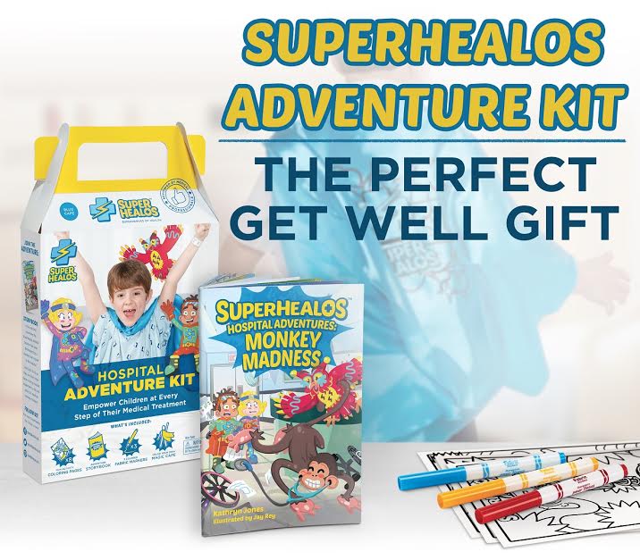 SuperHealos Hospital Adventure Kit uses fun, easy-to-read stories and engaging activities to introduce children to medical settings, procedures and staff. Packed with imagination, art, education and play, this is the perfect get-well gift for children. Each kit contains an adventure storybook in which two young kids use their magic superhero capes to bring medical equipment to life and solve medical mysteries. The kit also includes a coloring book, a color-your-own superhero cape, and fabric markers. Just like signing a cast, children are able to color and personalize their capes and coloring pages.