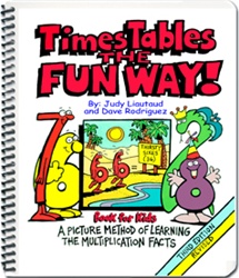 Times Tables the Fun Way Book for Kids teaches the 0s through 9s times tables using cartoons and stories. Proven effective. Kids love the stories. For example, to teach 6x6. The story tells of twin sixes crossing the desert to visit cousins. They become very thirsty sixes which sounds like the answer to 6x6, 3