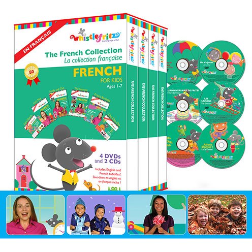 Get the language-learning party started with The French Collection. Six lively programs encourage children to speak in French, sing in French, even dance in French! This multimedia set includes the French immersion videos Dedans et dehors (Inside and Out), On va jouer (Let's Play), Les saisons (The Seasons), and L'anniversaire de Fritzi (Fritzi's Birthday). Created to be enjoyed again and again, each video encourages children to learn basic French vocabulary as they interact with vivacious host Marie, playful peers and charming animated characters. The fun continues with the lively CDs, Cha, Cha, Cha and Allons Danser! (Let's Dance!), that combine catchy original songs and traditional favorites with rollicking world music rhythms. "The French Collection" is your passport to an exciting new world of language learning fun! Includes French and English subtitles and downloadable translation guide.