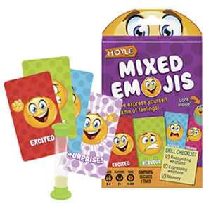 Hoyle Mixed Emojis is the 'express yourself' game of feelings. The game encourages kids 6-8 to recognize and express emotions and memory. Provides age appropriate skill building and is easy to learn Played in 15 minutes, it's FUN for both child and parent