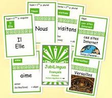 Conjugating verbs is a challenge for French learners and requires lots of practice. JubiLingua card games help students master this important skill while having fun. These "hands-on" games are a welcome and effective break from drills and worksheets. In addition to verb conjugations, the games reinforce tenses, definite/indefinite articles, possessive adjectives, and position of "ne" and "pas" in negative sentences.