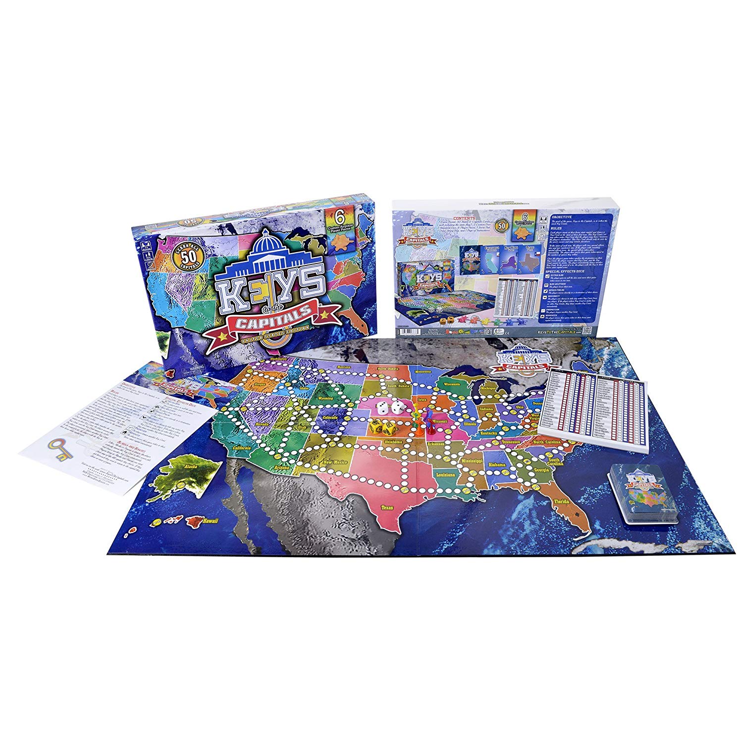 Can you name all 50 state capitals? With Keys to the Capitals, unlock the ability to master the state capitals and state flags in one fun board game for the whole family! Fly around in your custom airplane, collecting the most key cards to win. Building your knowledge has never been more fun.