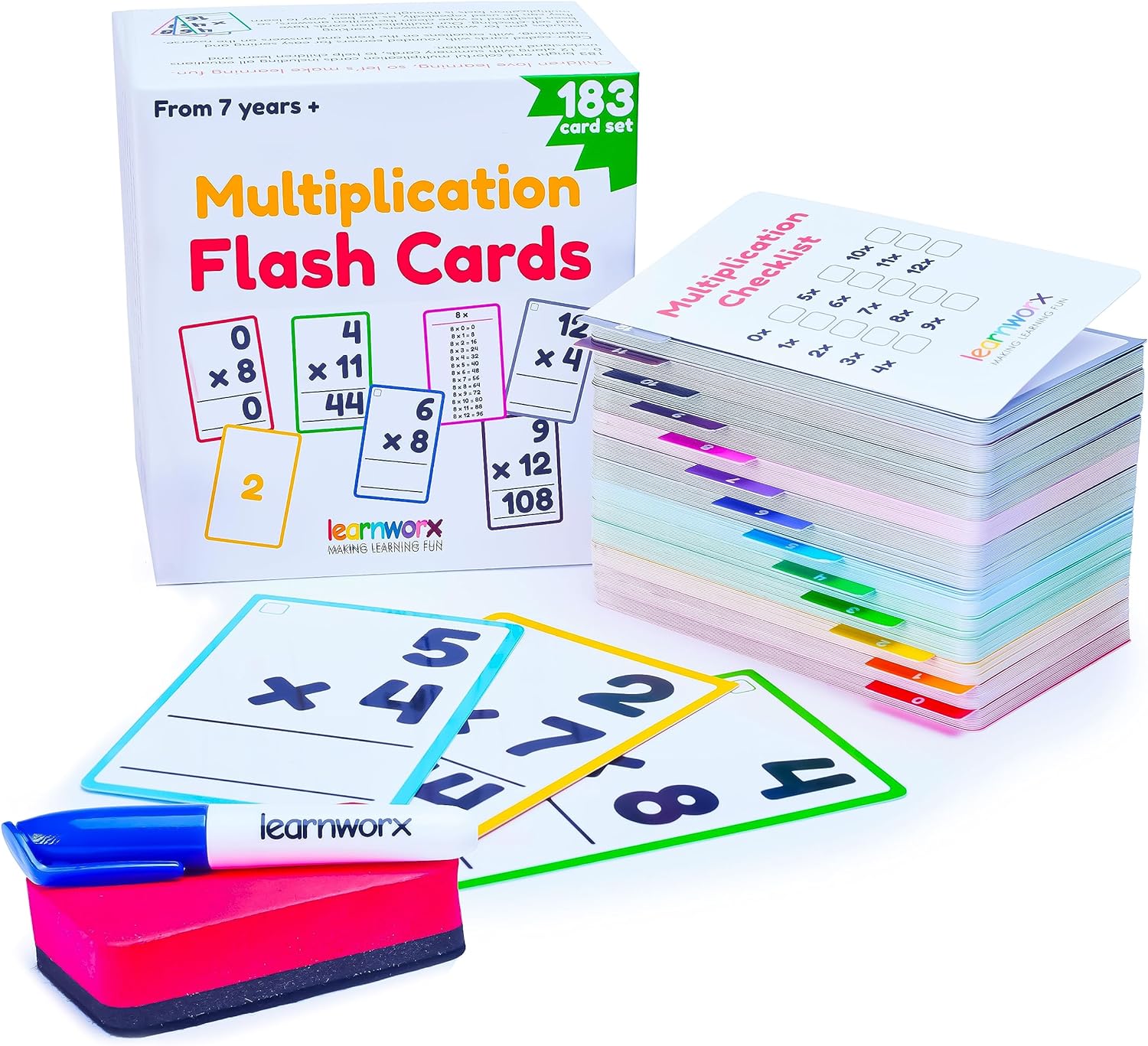Learnworx multiplication flash cards have been a game-changer for my child's math skills. The vibrant cards make learning engaging, and the systematic approach ensures a solid grasp of multiplication concepts. The durability is impressive, surviving countless study sessions, even with a bit of soda on them. These cards are a wonderful tool that transformed our learning basic math skills into a fun, educational experience.