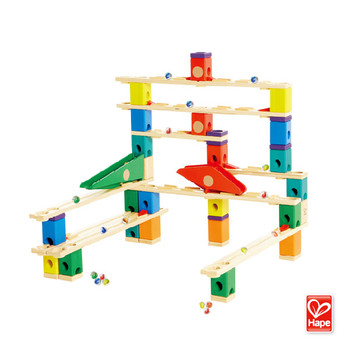 Hape Toys, Quadrilla Autobahn, is an exciting way for a child (ages 4+) to learn about physics! Teachers or parents can use this educational toy to introduce or reinforce a student's understanding of potential energy, kinetic energy, gravity and levers. The marble tracks are made with the highest quality materials and demonstrate a mastery of design. Many manufacturers have created products similiar to Hape's Autobahn, but the wood design and natural colors put it a notch above the rest. The first thing my child said after opening the box was, "It smells like wood!" He was very excited to get started. Although a couple images were tough to follow, overall the first design didn't take more than 15 minutes before we were mesmerized by the marble traveling down our work of art. I'd highly recommend this product not only for its educational purposes, but for its top notch craftsmanship and design. Well done, Hape!
