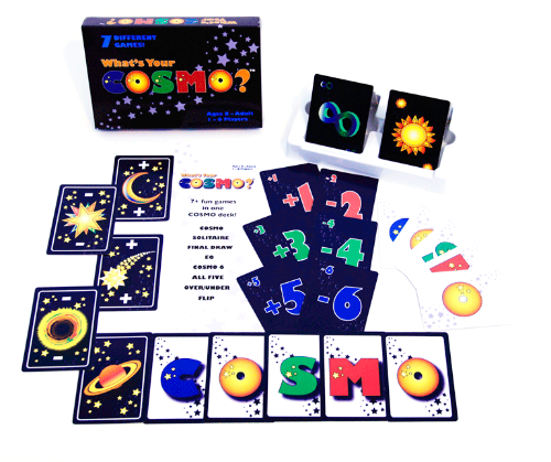 WHAT'S YOUR COSMO?™ card game is a new generation of playing cards with a "cosmic" twist. It's the game with the most games to play! Play all seven. Each game is rated for level of skill and complexity so families can choose the best game to fit their players' skill level.