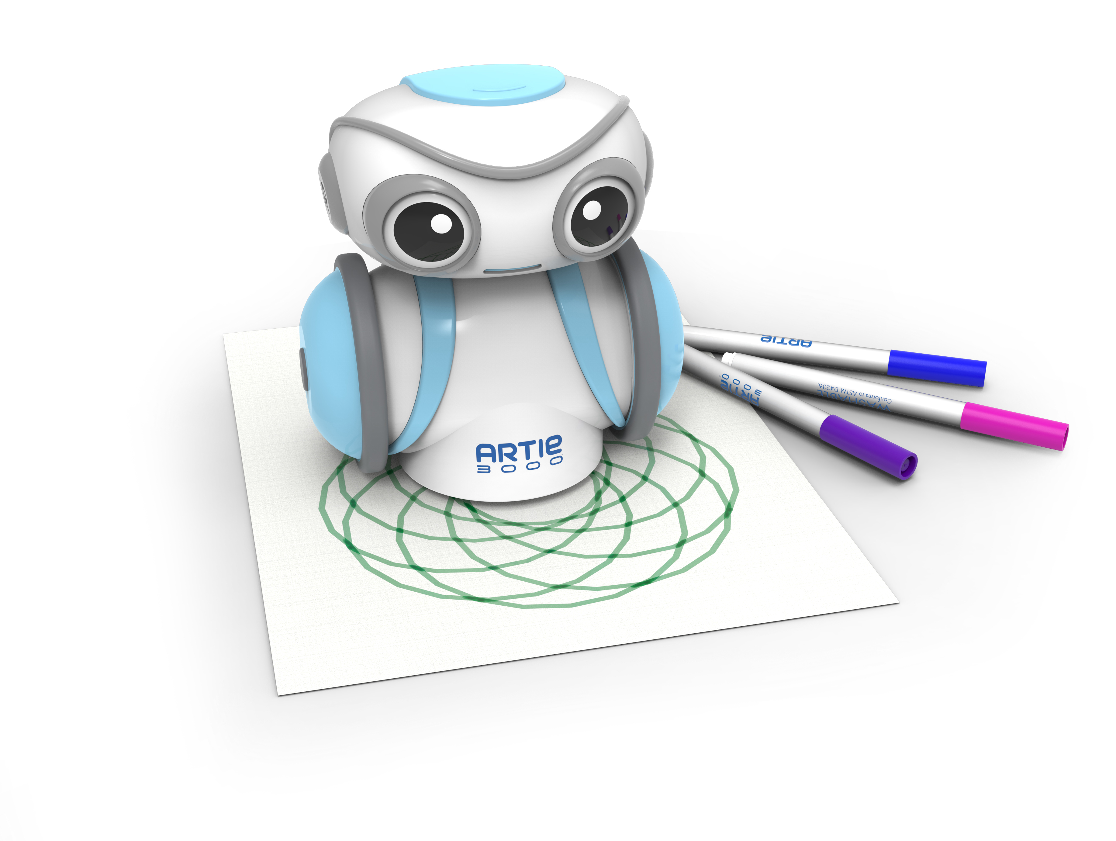 Say hello to Artie 3000™, the new coding/drawing robot from Educational Insights that sparks curiosity in kids and helps them develop coding skills. With Artie, kids 7+ can imagine simple or complex drawings and designs, and translate them into code on any device. Kids then get to experience the payoff of watching Artie draw what's been coded, line by line, moving forward, backward, and spinning in any direction while lifting and lowering four thin-tip, colored markers. Beginners can start with Artie proprietary and intuitive drag-and-drop coding interface, but then advance to exploring more complex languages like Java, Python and more. With its own built-in WiFi server, Artie is compatible with any desktop computer, laptop, tablet or smart device with no need for an internet connection. In addition to freeform coding, Artie comes pre-programmed with a variety of designs like numbers and letters, shapes, games, and line-art for coloring. Artie 3000 is noted for its unique ability to foster critical coding skills through artistic inspiration and expression. Artie has launched with the endorsement of American Mensa, the world-renowned society for high-IQ individuals. Artie is only the third character to ever receive an honorary Mensa card, following in the footsteps of Lisa Simpson and Mr. Peabody.