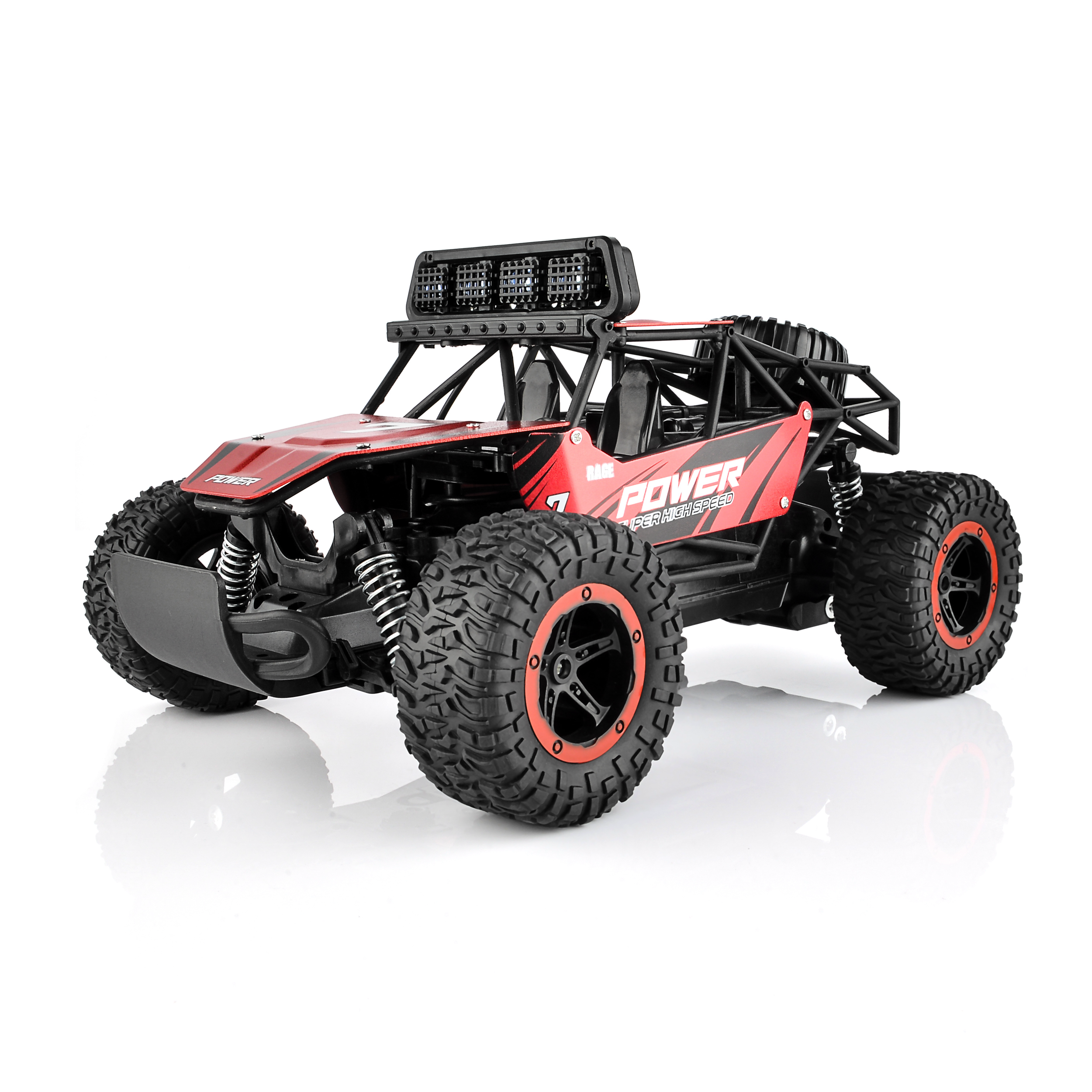 The easy-to-use 2.4GHz non-interference remote controller makes the car ready to run without interference enabled by its anti-jamming features. The radio control distance is about 50 meters. It is a great off-road monster truck for indoor and outdoor use.