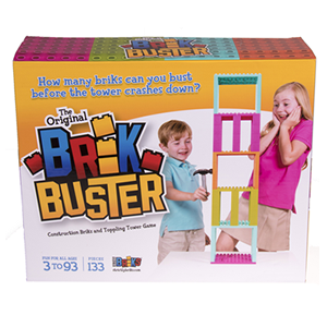 Competitive fun for the whole family (or kids on cul-de-sac) this unique tower toppling game was designed by kids. To play, everyone takes turns hitting the support pieces with the included hammer, trying not to make the tower fall to the ground. The last person to knock out a brik without toppling the tower wins! (Just don't be the one to knock the tower down). Test your skills and strategies, play best-of-three, or create your own variation of the game.