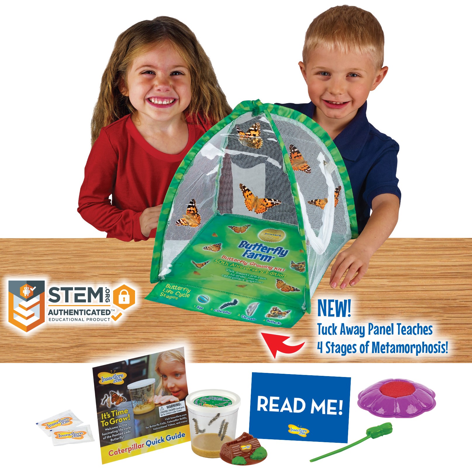 To celebrate 50 years, Insect Lore has created the Butterfly Farm! Watch as 5 tiny larvae embark upon their remarkable journey from caterpillar to butterfly. Insect Lore has been successfully providing children and adults alike the wonder of metamorphosis for 50 years! Our newest butterfly kit includes a Cup of Caterpillars, a one-of-a-kind Butterfly Farm habitat, and everything you need to raise your own caterpillars! Insect Lore's reliable biology ensures your children will enjoy a rewarding and memorable learning experience. Insect Lore's Butterfly Farm kit introduces children and adults to the fascinating world of Metamorphosis! Helpful tips and accessories make learning a complex process simpler and easier than ever! Transform your view of the natural world by witnessing one of nature's most incredible phenomena right at your fingertips as caterpillars eat grow and transform into adult butterflies! Butterfly Farm brings family together as they raise & release their very own insect friends! Connect your children to nature and give them an appreciation for the outside world that they will never forget!