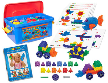 This colourful set has 400 of our patented side joining 'rainbow' coloured bricks. It is supplied with 6 incrementally difficult A3 instruction sheets of shapes & models to make and our 'Guide Book' with 60 more pages. The side joining Squares and Triangles can build hundreds of models and provide many months of structured learning activities that will introduce children to their first engineering concepts in class or at home. All pieces are child safe for under 3’s.