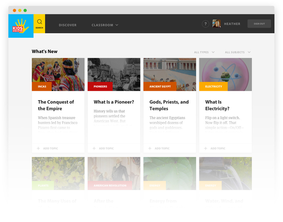 Kids Discover Online is a web-based application that works on any device. Educators, parents and students can login with an authenticated username and password, to access a growing library of over 2,000 engaging Science, Social Studies, and Nonfiction articles.